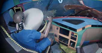 A High-Strength Steel (HSS) cab absorbs and deflects the energy of a crash. Advanced driver-side airbags come standard, while side curtain airbags are an available option. The impact-absorbing dash and steering column protect drivers’ arms, legs, knees, and ankles. The engine and transmission are designed to drop down and away from the driver in the event of a frontal collision. These driver protection measures continue to meet and exceed the rigorous standards set forth by the Swedish Cab Safety Test.
